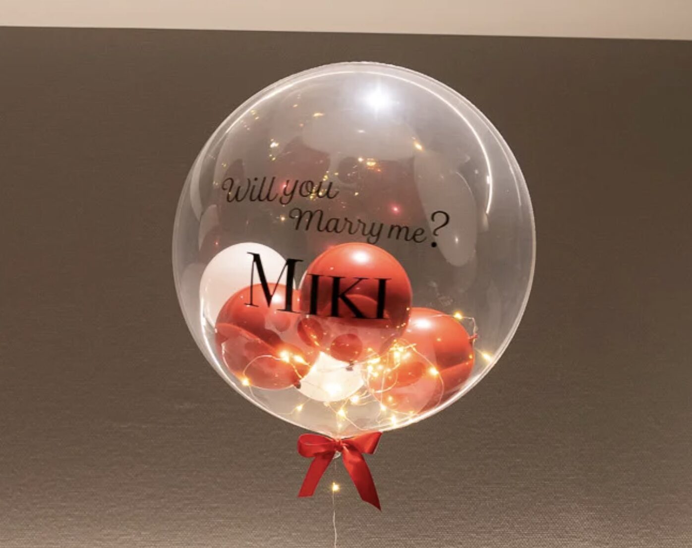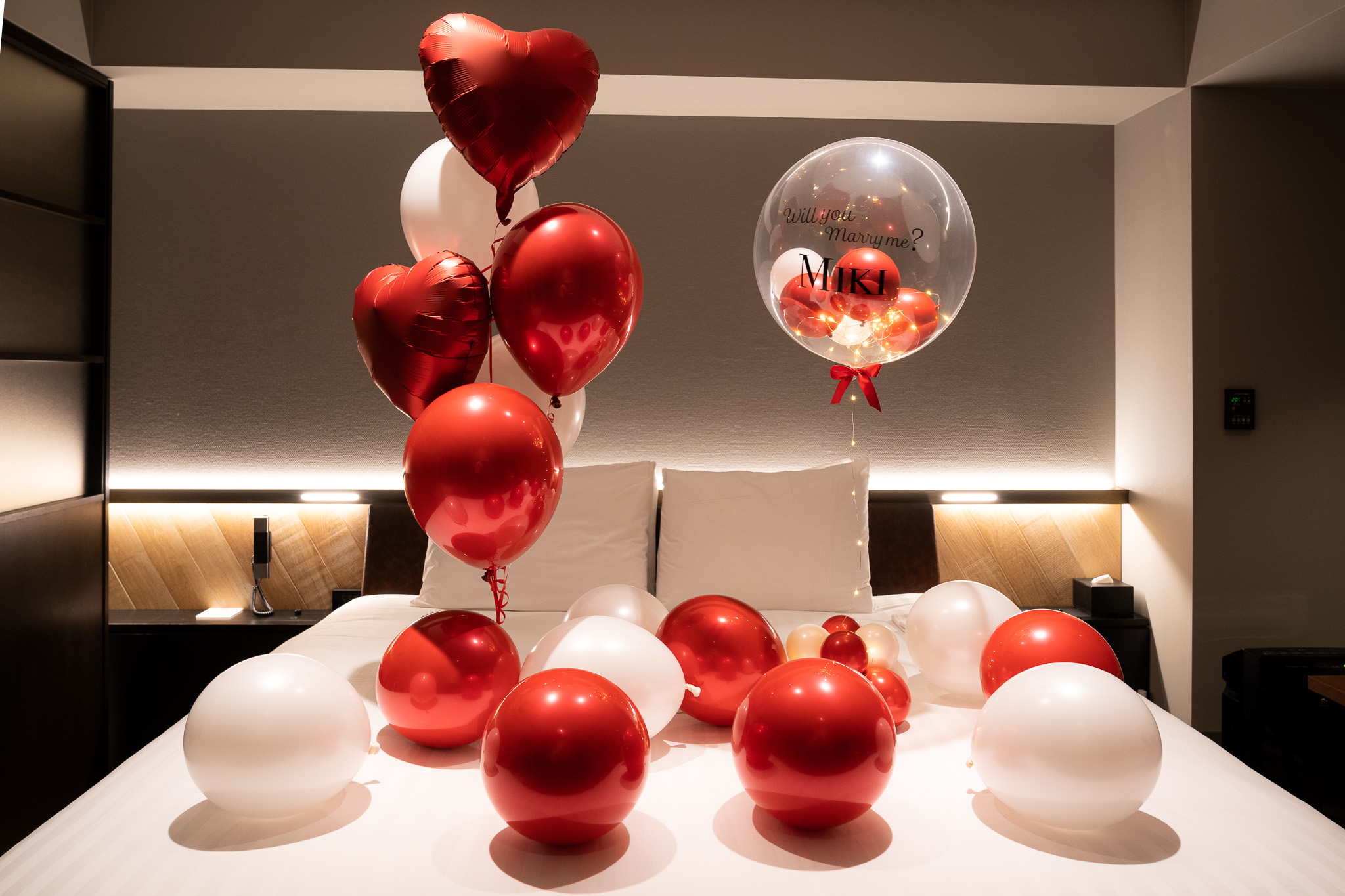 人生で一番大切なプロポーズの瞬間を、バルーン装飾でとびきりロマンティックに演出します。 お部屋の雰囲気に合わせたカラーコーディネートで、自宅がまるで映画のワンシーンのような空間に早変わり。忘れられない「YES」の瞬間をトータルでデザインします。 大切な言葉を印字したバルーンもご用意可能です。